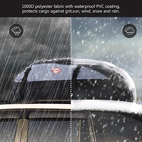 【Waterproof and robust:】The car top carrier is equipped with an oversized zipper with flaps for water repellency and light-resistant, keeps your things dry and protected from dirt, rain, sun, wind and snow. More capacity, more robust, more fun to travel!