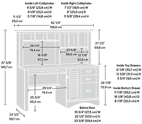 Hutch has cubbyhole storage and vertical storage compartments for additional storage and display