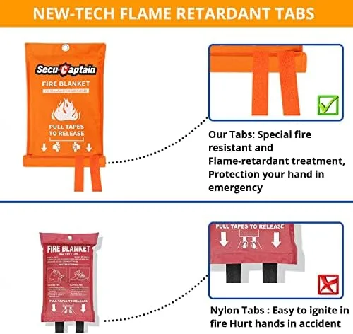 NEW-TECH FIRE RETARDANT TABS: This design fire blanket tabs with special high temperature fireproof and flame retardant treatment.Compared with the nylon tabs which will burn hands under heat source, our fire retardant tabs are not affected by high temperature, and can be pulled out in ease without hurting hands. Safe to use