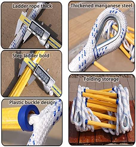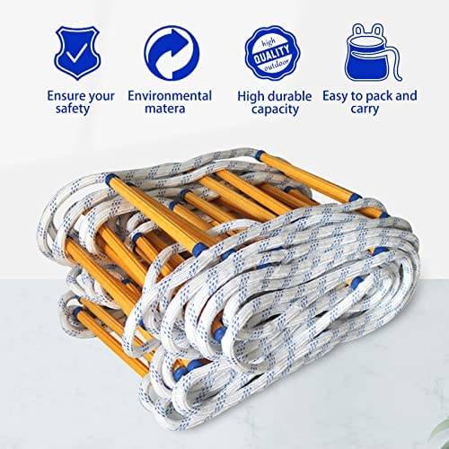 【Super Durable】This escape rope ladder made of High strength polyester and resin, with manganese steel hooks. Corrosion resistance, wear resistance, acid and alkali resistance, non-slip, moisture, no deformation, dry and no cracking. A reliable secure equipment for you and your kids to escape in emergency