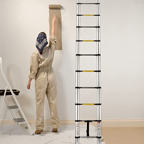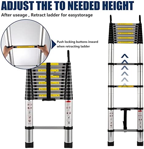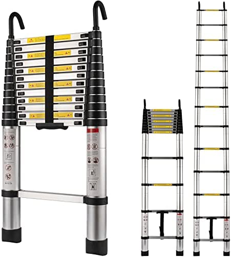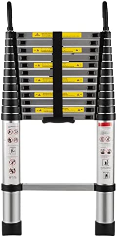 12.5FT Aluminum Telescopic Extension Ladder 330 LBS Capacity Telescoping Ladder Multi Purpose Extension Ladder with Spring Loaded Locking