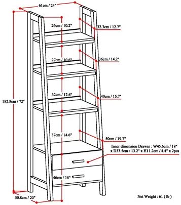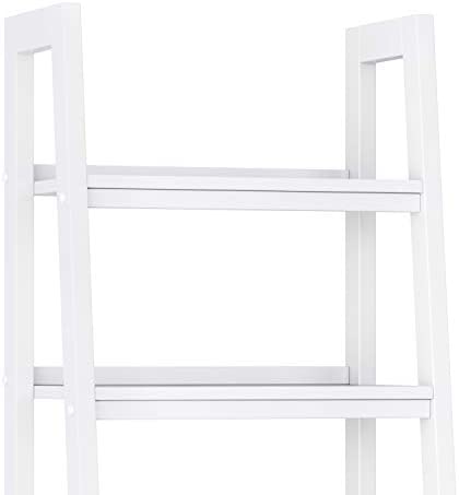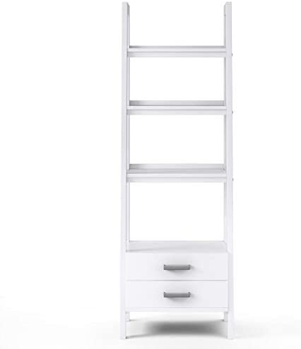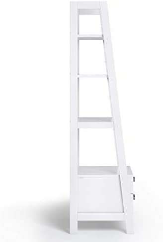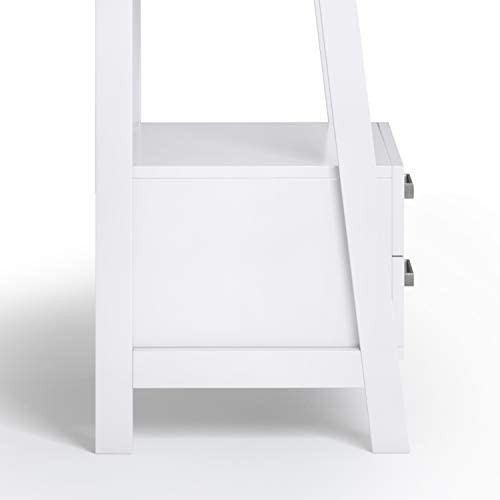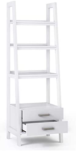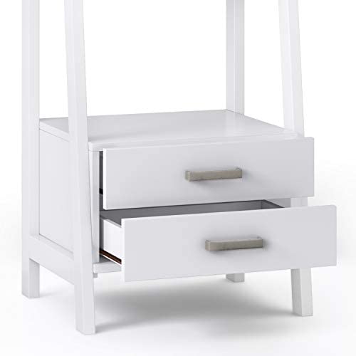 SIMPLIHOME Sawhorse SOLID WOOD 72 inch x 24 inch Modern Industrial Ladder Shelf with Storage in White with 2 Drawers and 4 Shelves, for the Living Room, Study and Office