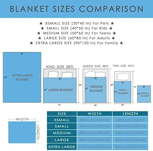 ❤ SIZE INFORMATION ❤│Available in 5 sizes: 40x30In Toddler size for Cover legs,cats,dogs,pet;Small 50x40In Throw size for kids and child; 60x50In Teen size fits into any room in the house – bedroom, guest room, kid’s room, vacation home, living room or take it along for RV trips;80x60In Queen size for couch, sofa, sectional, love seat, recliner or bed. Great for relaxing around the house, watching TV, reading a book, snuggling or cuddling ; Oversized 120x90In for Party or family to watch TV .