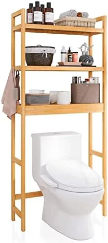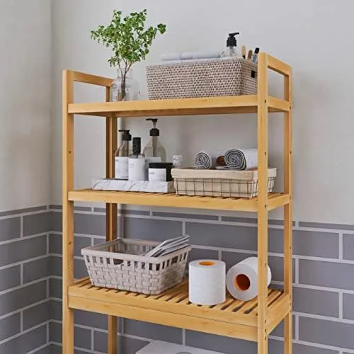 SMIBUY Bathroom Storage Shelf, Bamboo Over-The-Toilet Organizer Rack, Freestanding Toilet Space Saver with 3-Tier Adjustable Shelves (Natural)