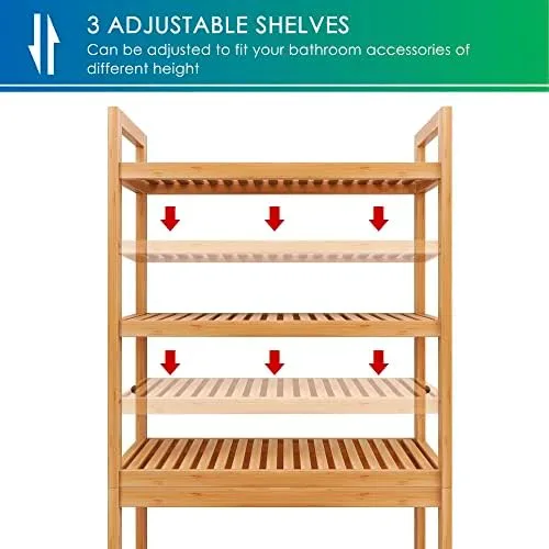 ★ 3 ADJUSTABLE SHELVES for TALL or SHORT: The 3 open shelves can be adjusted to fit your bathroom accessories of different height, short for towels, roll paper, books, soaps; middle for toiletries, shampoos, lotions, body wash; tall for plants, flowers, scented candles; all can be well organized and in a hand reach