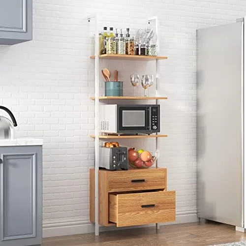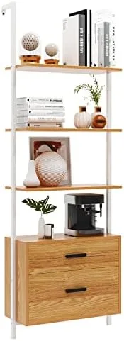 【4-Tier & 2 Drawers】: Each layer weight maximum load 22lbs. The 4-Tier storage shelves with can meet your more home storage needs.This 3-tier display shelf is mixed with 1 cabinet providing different size storage space to meet your daily storage need more flexibly. It can place books, flower pots, decorations, photo albums, or bags which saves you a lot of space.