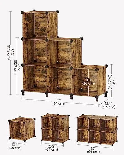 [Customizable Shapes] Designed with an interlocking structure, you can arrange these plastic cubes into different shapes to adapt to your space, like a ladder shape or a 2 x 3 shelving unit