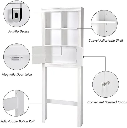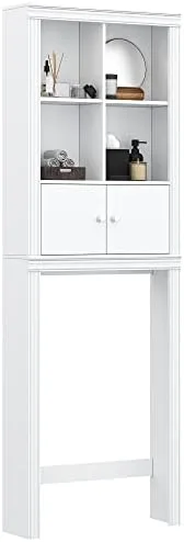 Spirich Over The Toilet Storage Cabinet, Above Toilet Storage Cabinet with Doors, Freestanding Bathroom Space Saver, White