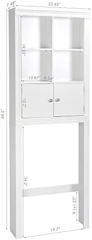 PRACTICAL SPACE SAVER: This wood bathroom organizer over toilet is designed to make full use of the space above the toilet and create additional storage in your bathroom. The overall size of the storage cabinet above toilet is 23.43″(W) x 7.48″(D) x 68.5″(H), suitable for most standard-height toilets with 34.2″ from the bottom shelf to the floor.