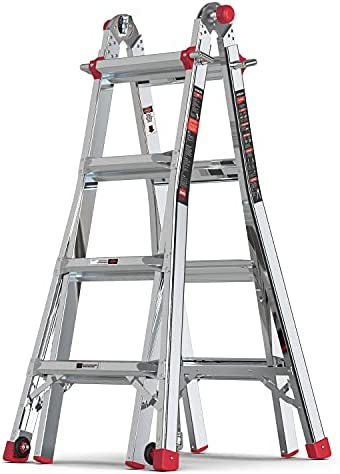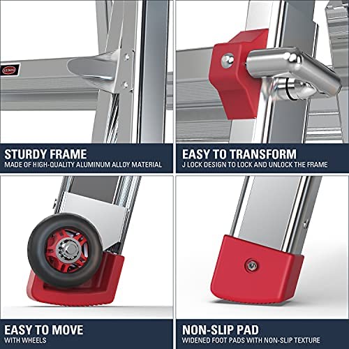 【PORTABLE DESIGN】 – Portable ladder,weight 41 lbs and equipped with two wheels to make it easy to move