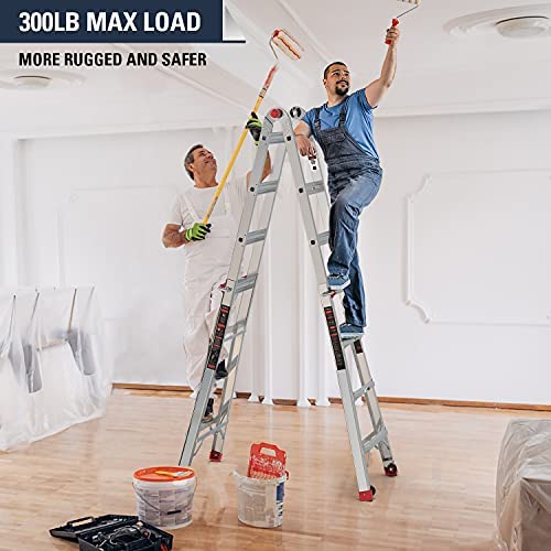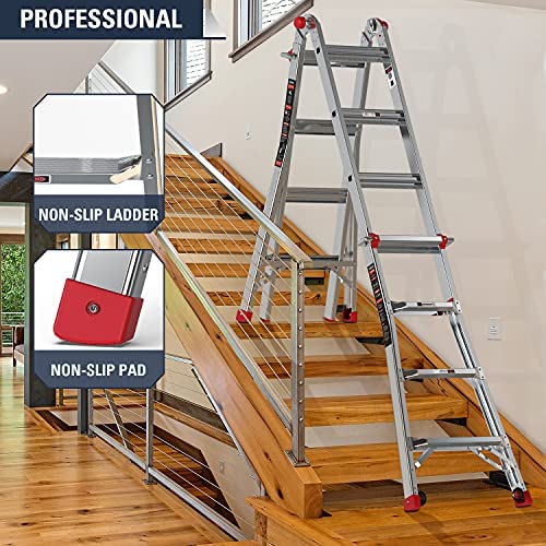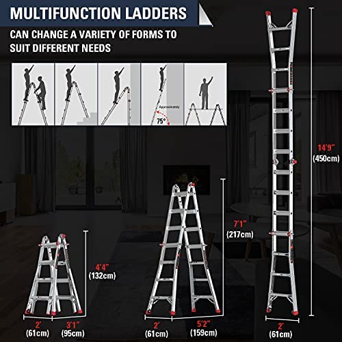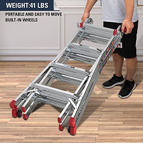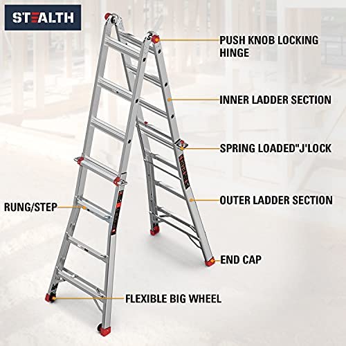 Stealth Multifunction Telescoping Ladder, Aluminum Extension Ladder with 2 Flexible Wheels 17 FT Max, Step Ladder for Working Indoor/Outdoor EM4X4L1