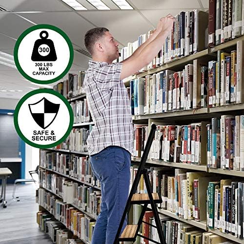 Anti-slip ribbed steps for added security and slipping prevention, the steps are made from high quality brushed aluminum, providing strength and style. Rubberized feet keep the ladder from slipping and prevents your floor from getting scratched during use. Extra-large, oversized top platform provides a safe, stable and comfortable place to stand and eliminates fatigue