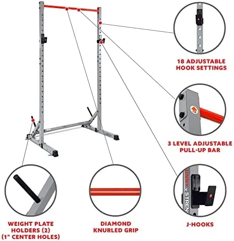 Sunny Health & Fitness Squat Stand Power Rack for Weightlifting – Multifunction Bench Press Squat Rack with Adjustable Pull Up Bar for Home Gym