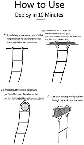 SUTON Emergency Fire Escape Ladder Flame Resistant Safety Rope Ladder with Hooks Fast to Deploy & Easy to Use Compact & Easy to Store Withstand Weight up to 2000 pounds(13ft)