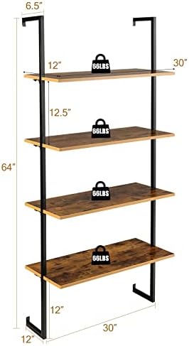【Reliable & Sturdy Construction】The overall framework is made of high-quality metal and each shelf is made of premium wood. Therefore, the wall-mounted bookshelf is relatively excellent in sturdiness, which shows in the overall weight capacity up to 264 lbs.