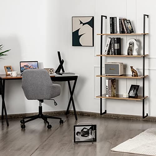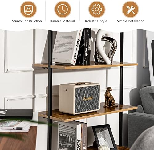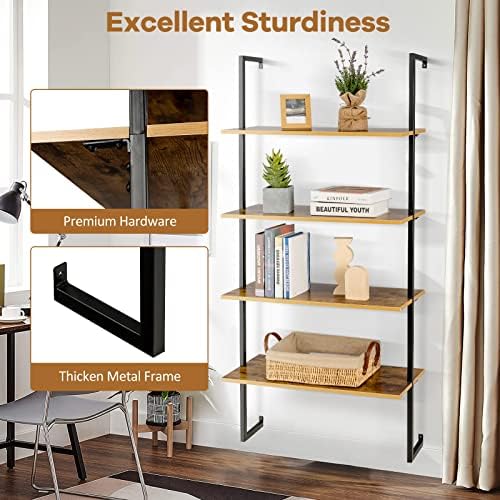 Tangkula 4-Tier Ladder Bookshelf Widened 30 Inch, Wall Mounted Ladder Shelf Bookcase, Industrial Open Display Storage Rack Against The Wall, Plant Flower Stand with Metal Frame for Home Office