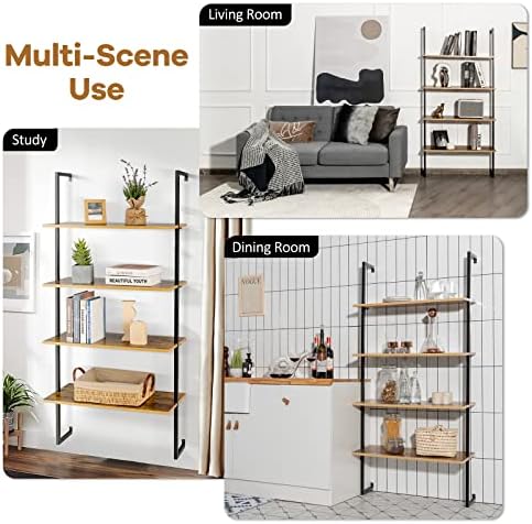【Adequate Storage Space】The wall ladder bookshelf is equipped with 4 layers in total and each layer is fairly spacious. In addition to your precious book collection, you can also place other items on it, such as beautiful decorations, potted plants, sundries storage boxes and so on.