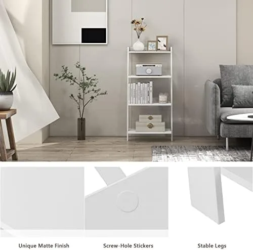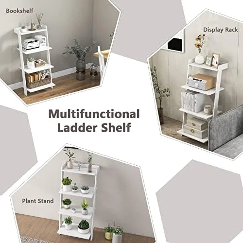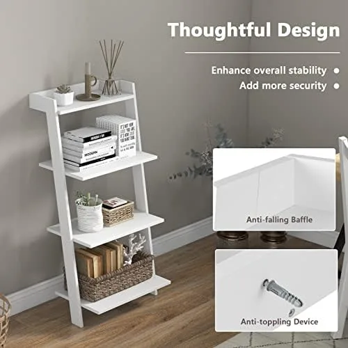 [Multifunctional Ladder Shelf]: Combing unique finish and sloping design, this 4-tier leaning bookshelf fits well with different decorations in your rooms. And it can bring a touch of texture and elegance to different places, such as the living room, bedroom and home office.