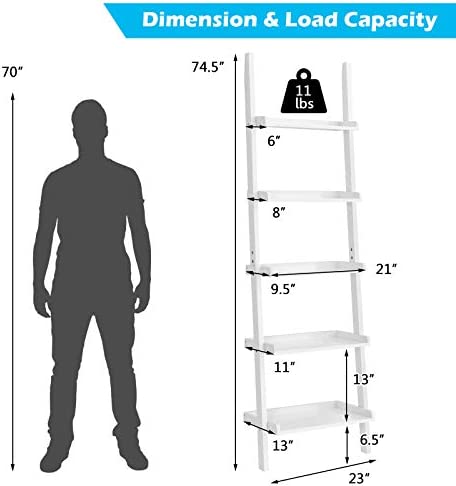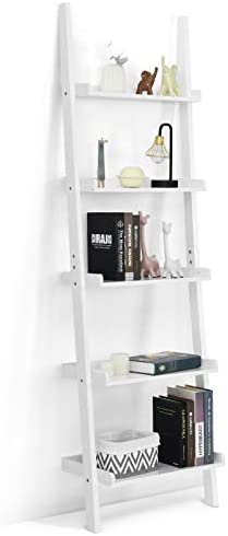 Tangkula 5-Tier Ladder Shelf, Wall-Leaning Bookshelf w/Open Shelves, Plant Flower Stand, Storage Display Organizer Rack, Multifunctional Bookcase for Living Room Home Office (White)