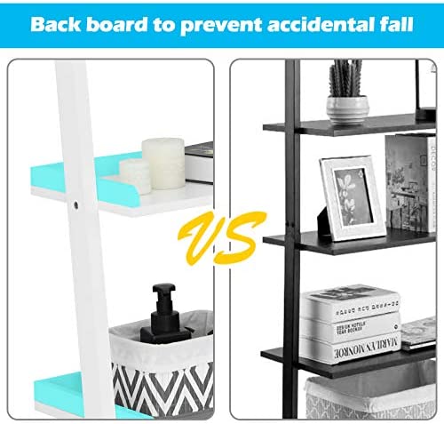 【5-tier Storage Shelves】Coming with a 5-tier open layout, our ladder shelf makes full use of vertical space and provides you with adequate storage space for placing multiple items. Multiple divisions will not taking up much floor space while bringing you great convenience in organizing your room.