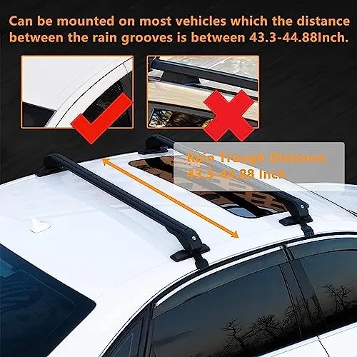 🚗【Roof Rack Specification】Color: Black Roof Bars; Size: Details show in the picture; Bar Length: 1m; Rain trough distance: 110-114cm; Window distance: 124-134cm; Quantity: Supplied in Pairs; Max Load: 75kgs. (Note: Please confirm the width of your roof before purchasing! )