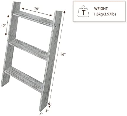 【QUALITY】Ladder shelves made of environmental pine wood (NOT Particle Board) which is solid and has no pungent smell. The ladder is very stable due to the each wood board is combined with two quality hardware fittings. So it could be sustained at least 50lbs weight. Each long side has a leather pad at the bottom to prevent slipping.