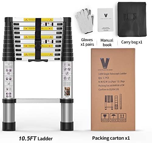 Telescoping Extension Ladder 10.5FT, Aluminum Telescopic Ladders with Carry Bag for Outdoor Indoor Use