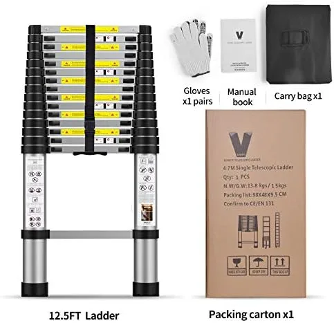 【EASY CARRYING】Telescopic extension ladders differ from traditional ladders in that they make carrying and storing more convenient and take up less space.