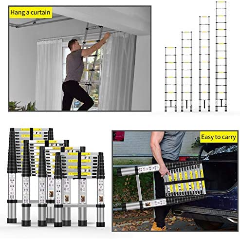 【EASY CARRYING】Telescopic extension ladders differ from traditional ladders in that they make carrying and storing more convenient and take up less space.