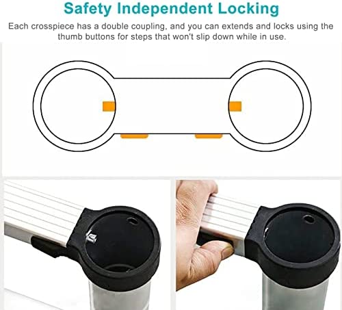 Multipurpose Using : This adjustable ladder should be part of any household and tool kit. Great for home/building maintenance, washing window, exterior/interior decorating, painting, repairing the roof, installing and repairing streetlights, climbing trees, etc.
