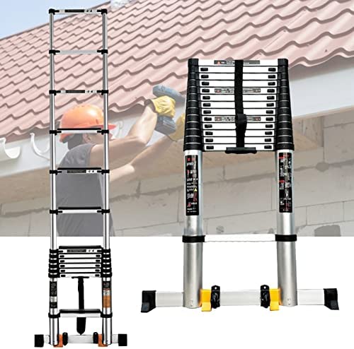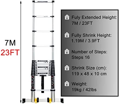 Premium Aluminum Alloy Material : The telescoping ladder is crafted from high-quality aluminum alloy extremely durable, corrosion resistant and rust resistant, lightweight yet strong. Max Load 150 kg (330 lbs).