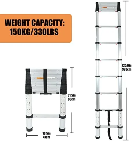 Extreme Versatility: This telescopic ladder is the homeowner’s best friend. Thanks to its maximum height of 10.5 ft (3.2m), this Ladder is perfect for all of your specific needs. Use it to help paint the walls, change the light bulbs, clean the windows et
