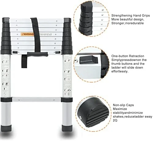 Premium Aluminum Alloy: This Telescopic Extension Ladder is crafted from high-quality aluminum alloy. It’s lightweight and easy to carry without sacrificing strength.