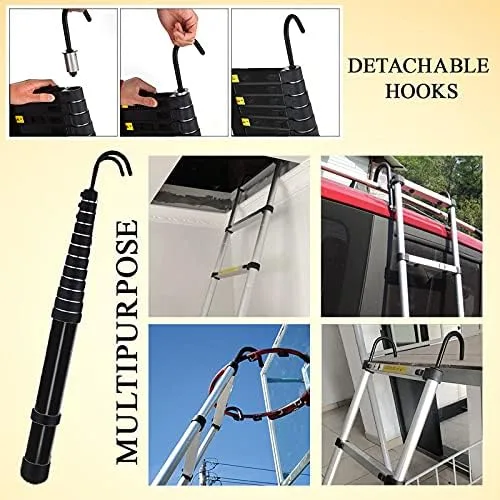 🎉SAFE & RELIABLE: Equips with 2 hooks for secure fixing, it greatly increase the stability when using the ladder on the attic, loft, roof, RV, tree etc. Non-slip Bottom caps and angled feet, which can protect your safety during using and effectively control accidents caused by slippery feet. Meticulous treatment, delicate design and wearable performance.