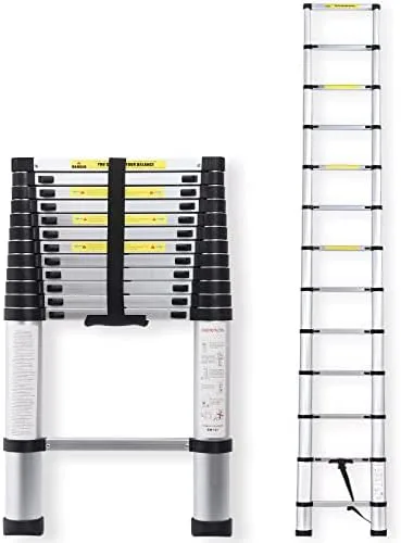 Strong and safe: The aluminum extension ladder is made of high quality aluminum tube and strong. It is safe with two locks on each step and no-slip material on the foot.