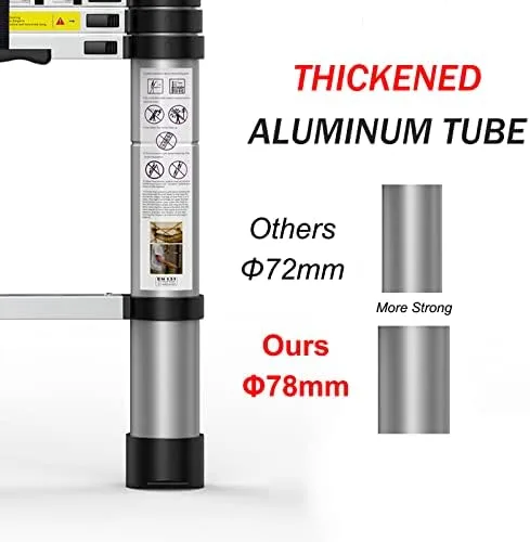 Safe and Convenient: Our ladder consists of 1.5mm wall thickness aluminum tube,compared with others 1.0mm thin tube,although increase the weight of ladder but greatly improve the durability and safety.And it weighs 24lbs, that is no problem for an adult to carry and use.