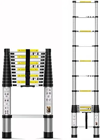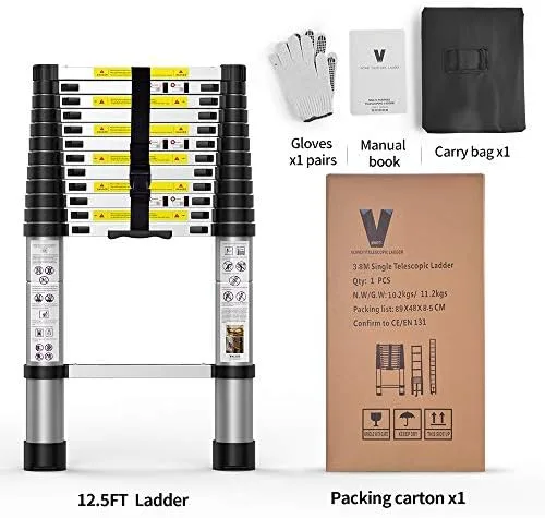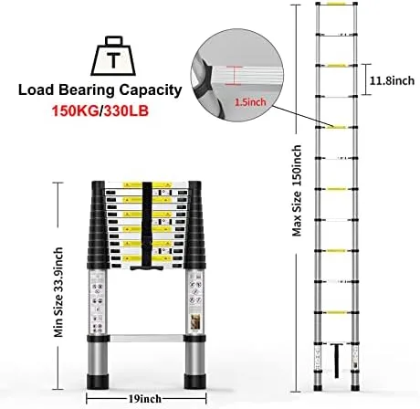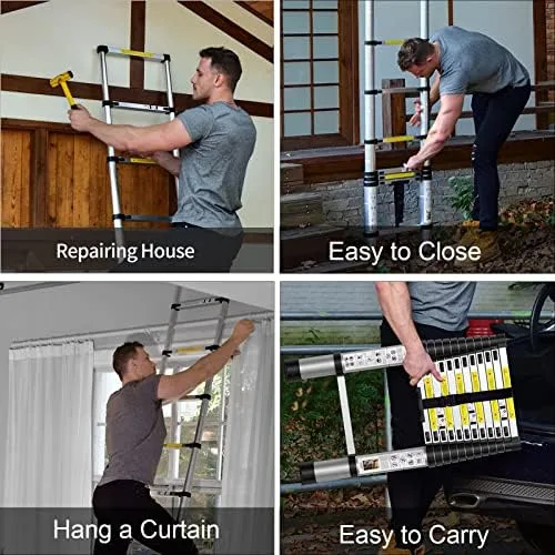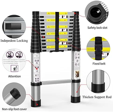 Independent Locking:This telescoping ladder has intelligent locking mechanism in each rung to prevent slippage,so that you can adjust the retractable ladder’s height from 2.8ft to 12.5 ft.(Attention:Please read instruction carfefully before using ladder,it can greatly improve the safety of use)