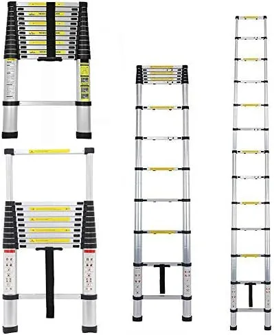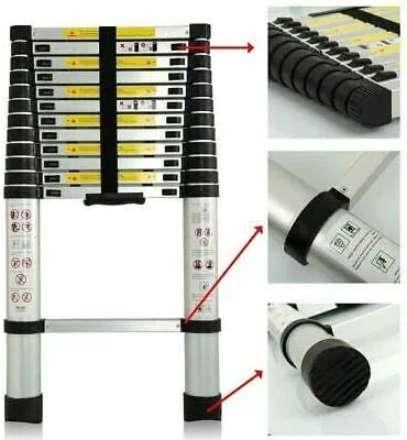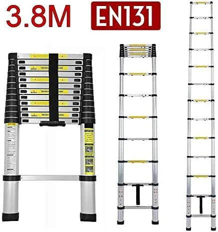 Telescoping Ladder 3.8M 12ft Extension Ladder Aluminum Multi Purpose Telescopic Extension Ladder Adjustable(330 pound/150 kg,EN131 ) for clean decorate party Replace the bulb