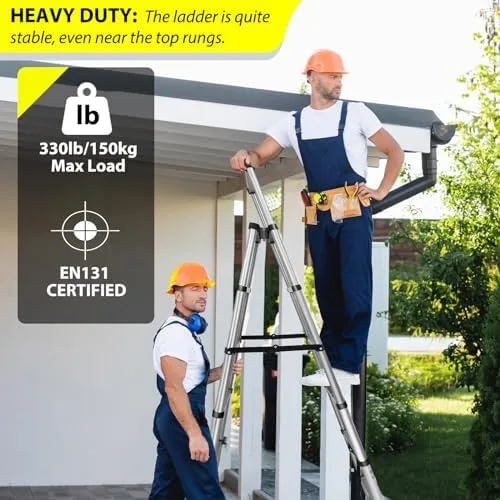 【EN131 Certificated & Premium Material】The telescopic ladder is certified to EN131 and has a MAX load capacity of 330lb. Constructed from high quality aluminium with base caps and angled feet, the ladder is easy to secure to walls and floors. Sturdy pedals in accordance with non-slip design standards.