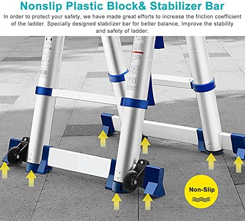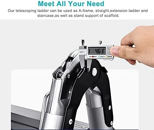 【Multipurpose Using】 This adjustable ladder should be part of any household and tool kit. Great for home/building maintenance, washing window, exterior/interior decorating, painting, repairing the roof, installing and repairing streetlights, climbing trees, etc.