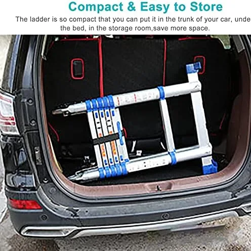 Whether you need a small boost or some serious height, the telescopic extension ladder will get the job done. The high-quality extension mechanism allows you to adjust the height quickly and effortlessly. You can do anything with the ladder, such as decorating, installing and adjusting cameras, badminton, repairing roofs, installing and repairing streetlights, climbing trees, etc. You can also take it on the road for a trip.