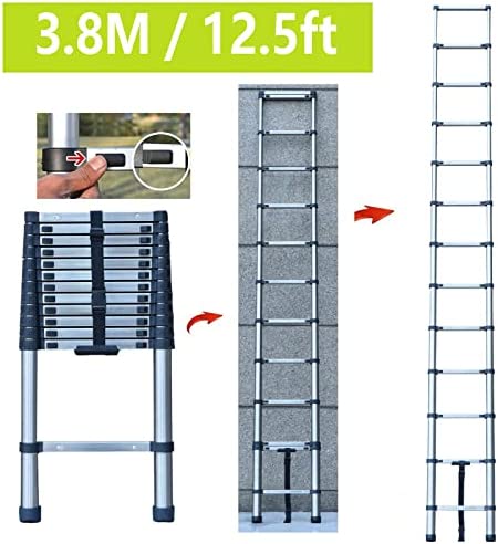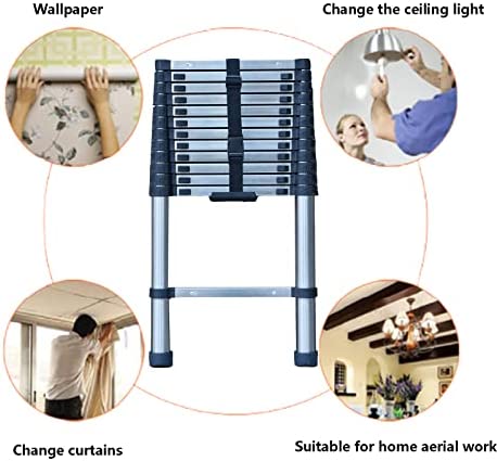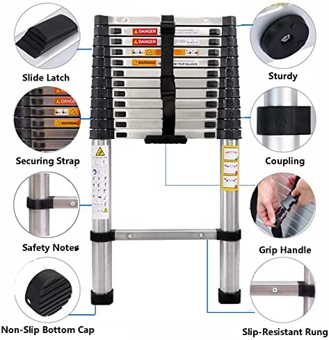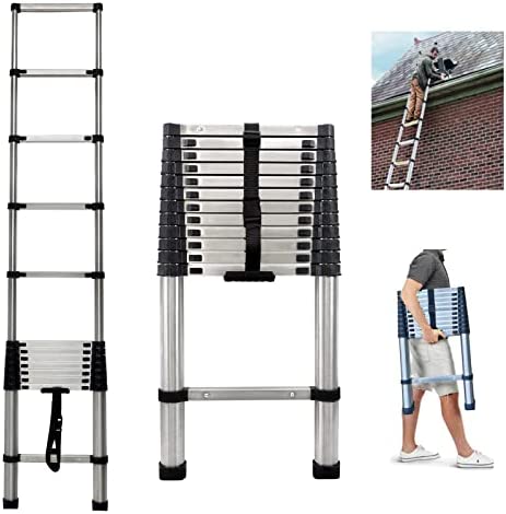 🥇 Telescoping Ladder 12.5 FT Stainless Steel Telescopic Extension Extendable Ladder, Multi-Purpose Ladder for Household Daily or Hobbies, Lightweight Compact Ladders, 330 Lb Capacity, Easy Storage