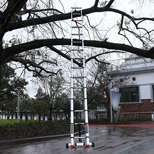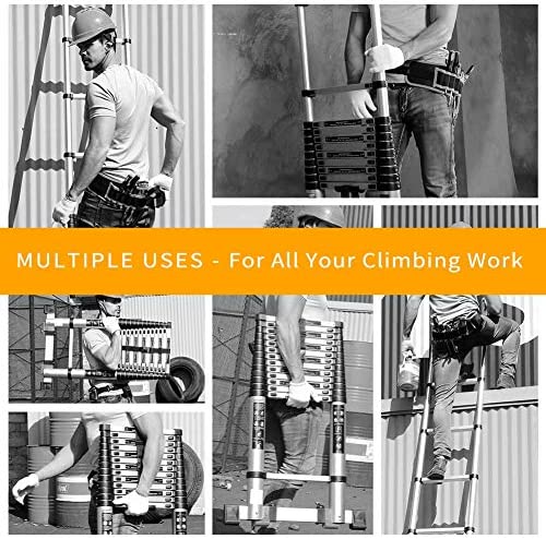 Telescoping Ladder Extension Multi-Purpose 18.5 FT Aluminum Foldable Industrial Compact Loft Ladder Household Daily or Emergency Use Portable Extendable Step Ladders 330 lb Large Loading Capacity