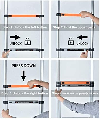✪ WIDENED PEDAL+THICK ANTI-AIR ALUMINUM ALLOY—The first step of the bottom is widened to 3inch/7.5 cm, the orange safety position and the above pedal are widened to 1.58inch/4cm, thickness is increased to 2.5cm,thickness of the side aluminum alloy steel pipe reaches 0.59inch/1.5cm. Compared to similar size ladders,our ladders are safer, stronger and more durable!