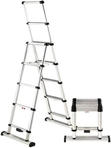 Telesteps 12ES Telescoping Ladder, Patented One-Touch Release, OSHA Compliant 8 ft, Wide Pro Step, Telescoping A-Frame Stepladder, 2 Safety Leaning rungs, Up to 12 ft Reach