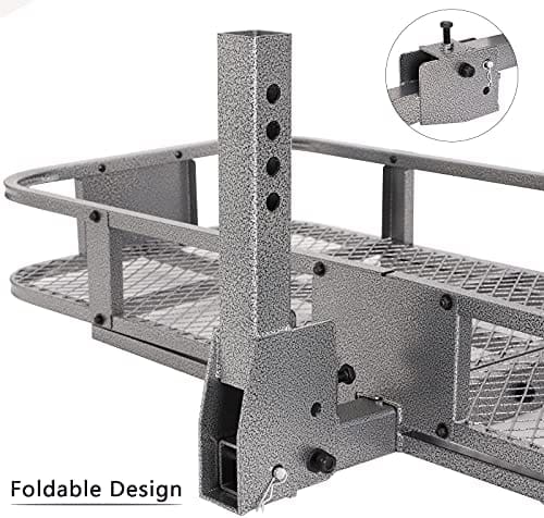 【Folding Design】– This hitch cargo carrier is equipped with a folding shank, the folding feature allows the cargo carrier to be folded up when not in use, even if your vehicle has a spare tire. Works great with any vehicle car SUV van or truck that has a 2″ receiver