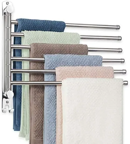 Towel Rack Wall Mounted JSVER Stainless Steel Bathroom Towel Rack, Swivel 6 Arms Towel Holder 180° Rotation Space Saving Towel Racks for Bathroom