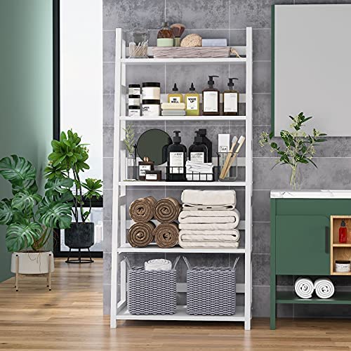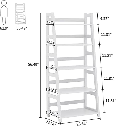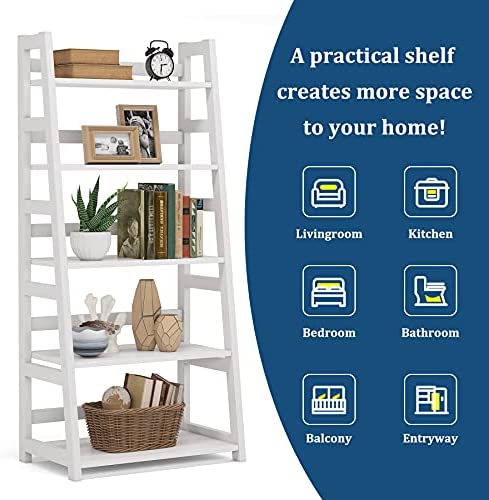 Tribesigns Ladder Bookshelf, 5-Tier Tall Ladder Shelves, Modern Leaning Bookshelf Large Plant Flower Stand Storage Rack for Kitchen, Home, Office and Living Room (White)
