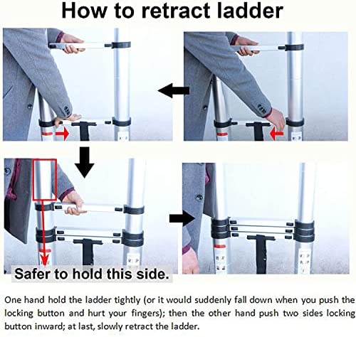 — Safe and Compact: black anti-slip rubber sleeve on the bottom of ladder step and stable locking