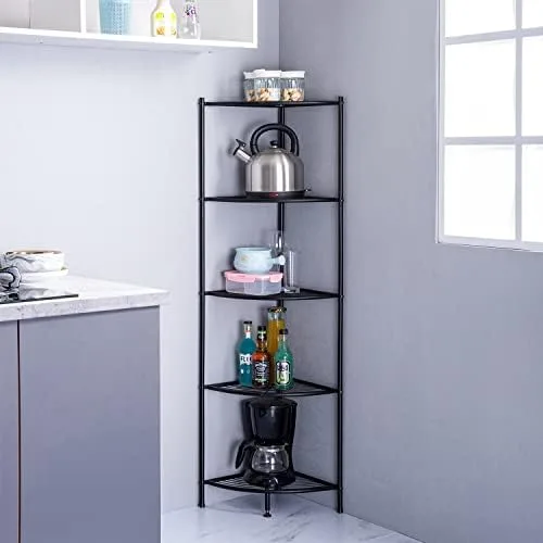 Keep your home organised and clean with the metal corner shelf unit. This 5-Tier corner shelf stand addition in your home is perfect for keeping small items and displayed proudly in any room. It is made from heavy-duty metal and finished with durable powder-coat paint for a long lasting and sturdy design that can be placed in any room, complementing any surrounding decor. They are easy to assemble, a simple accessory for any living room, bathroom or anywhere in your home.
